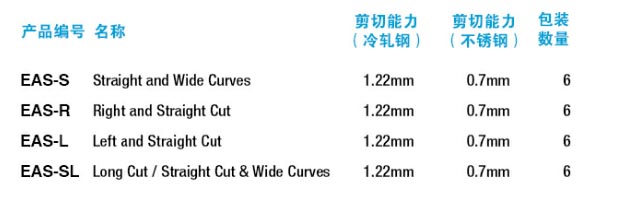 可剪切最厚可达1.2mm的冷轧钢以及O.7mm的不锈钢。落锤锻台金钢钳口确保本产品具有更长的使用寿命,而弹簧加压的把手则确保用户可以进行更快以及更平滑的剪切动作长度为剪子一半的透明盒使得用户可以存放剪刀以及测试剪切效果。